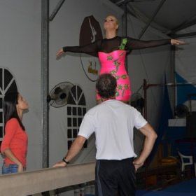Carla Perez já comecou a gravar quadros para seu programa "Clube da Alegria", que vai ser exibido na TV Aratu, filiada do SBT na Bahia. A ex-dançarina do Tchan se virou nos trinta para viver um dia de ginasta, com direito a subir na trave e vestir um collant. Nesse quadro, Carla interpreta a personagem Twitana, que sempre vai procurar aprender uma modalidade esportiva. "Essa minha personagem se acha o último acarajé da Bahia", divertiu-se Carla.